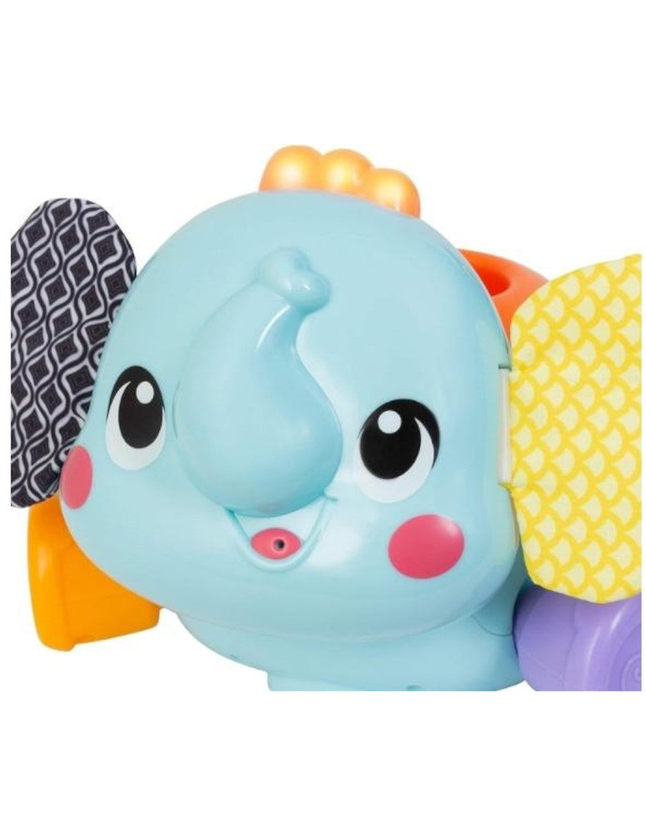 - ICONO DE ELEFANTE MULTICOLOR Y TEXTURIZADO PARA ESTIMULAR LA COORDINACIÓN OJO-MANO: Ele-fun Talk and Play utiliza una coloración encantadora y diferentes texturas para estimular la coordinación ojo-mano de los niños.