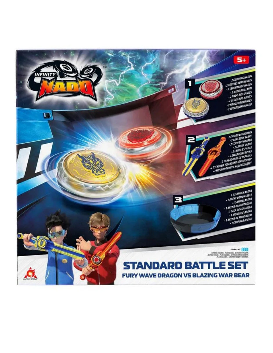 Infinity Nado VI | Set de Batalla Fury Wave Dragon vs Blazing War Bear | Infinity Nado | Playset | Edición de Lujo | Trompos Metálicos | Lanzadores Magnéticos | 2 Jugadores |