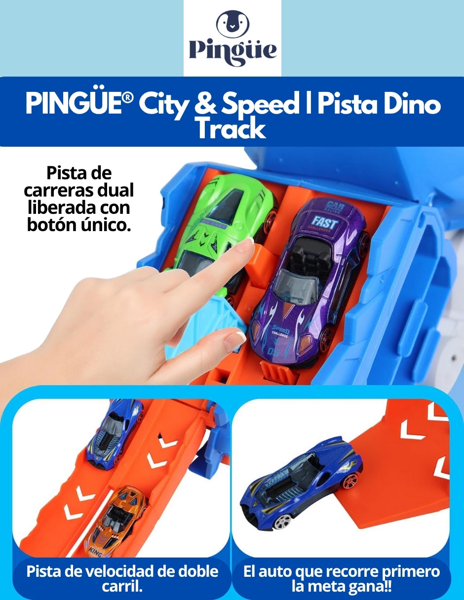 PINGÜE® City & Speed | Pista Dino Track para Niños | Set de Transporte y Almacenamiento | Alta Velocidad, Para Vehículos 1:64 | Azul | Tamaño 63x14x31 | Juguetes Niños estilo Hot Wheels.