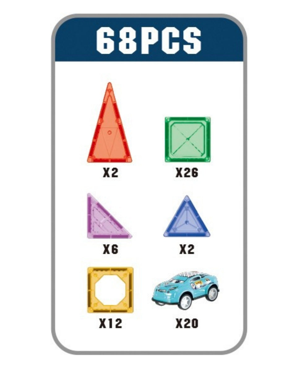 - 68 piezas magnéticas de alta calidad: Conexiones seguras y fáciles de ensamblar para estructuras resistentes.